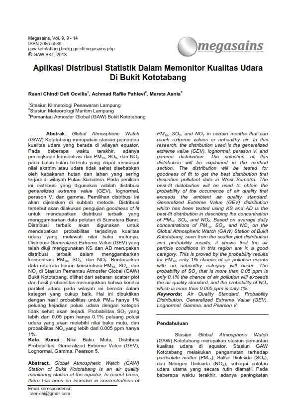 Application of Statistical Distribution in Monitoring Air Quality On Kototabang Hill
